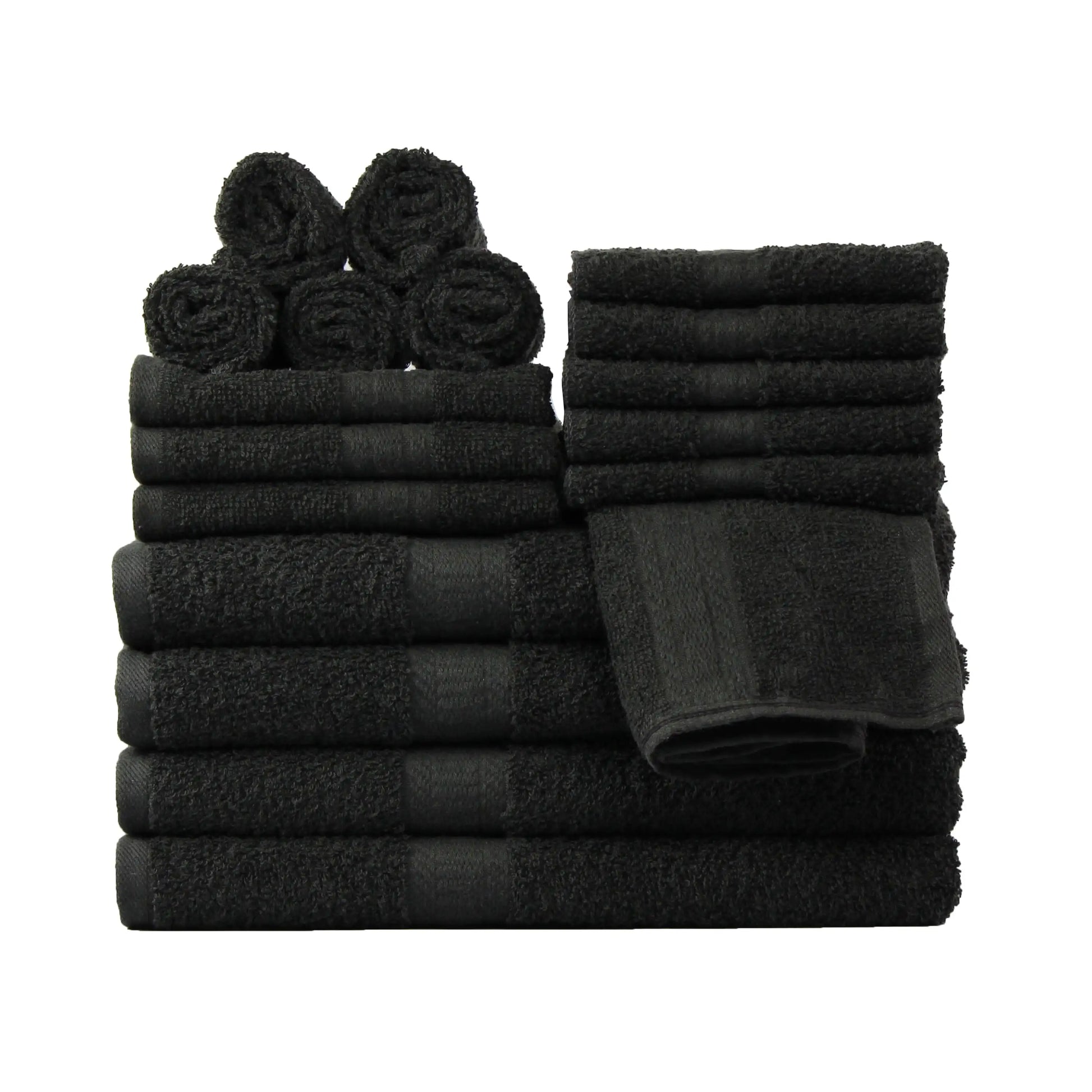 18 Piece Cotton Towel Set Black Bath Hand Towels Washcloths