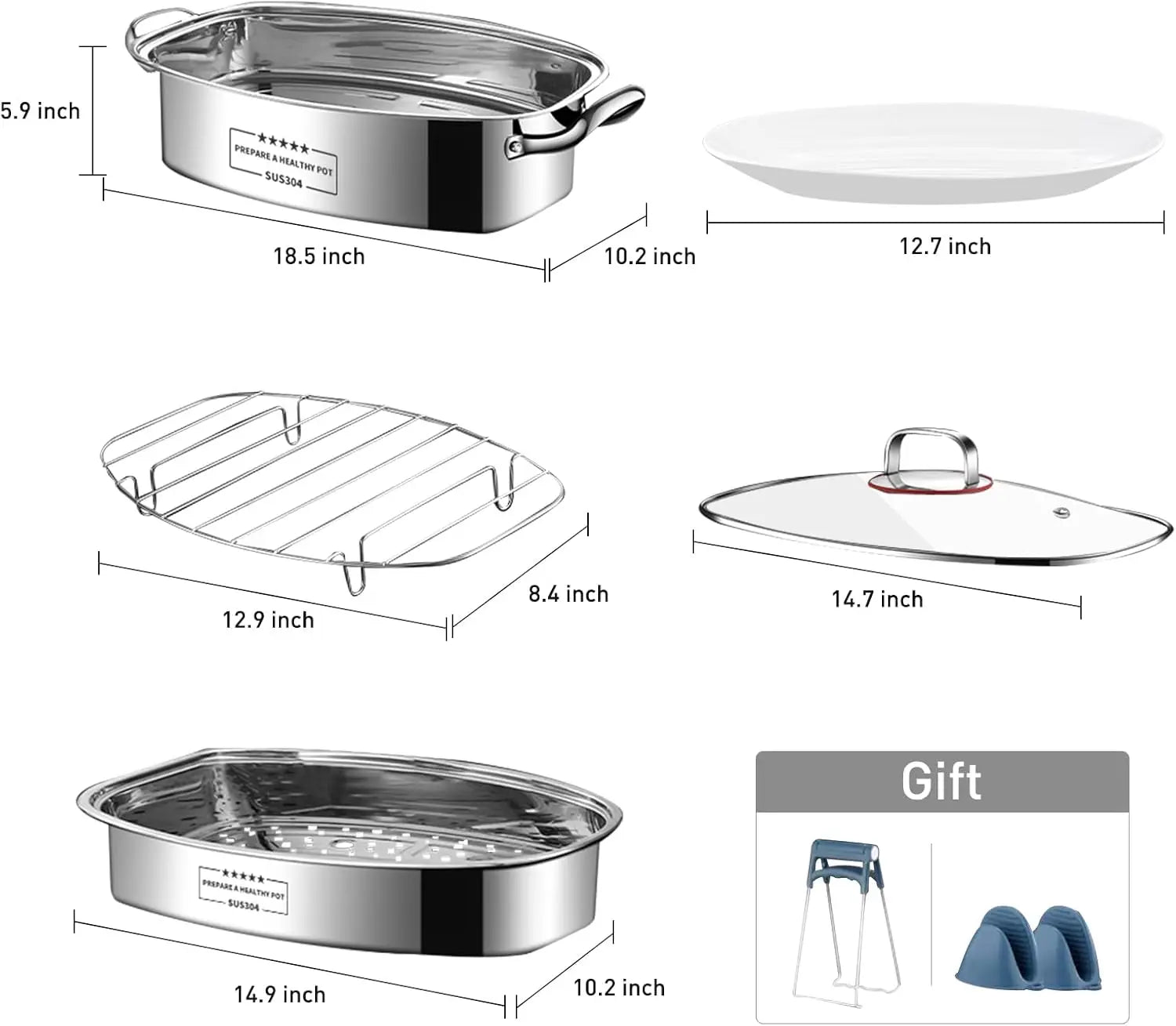 Two Tier Stainless Steel Fish Steamer With Rack And Mitts