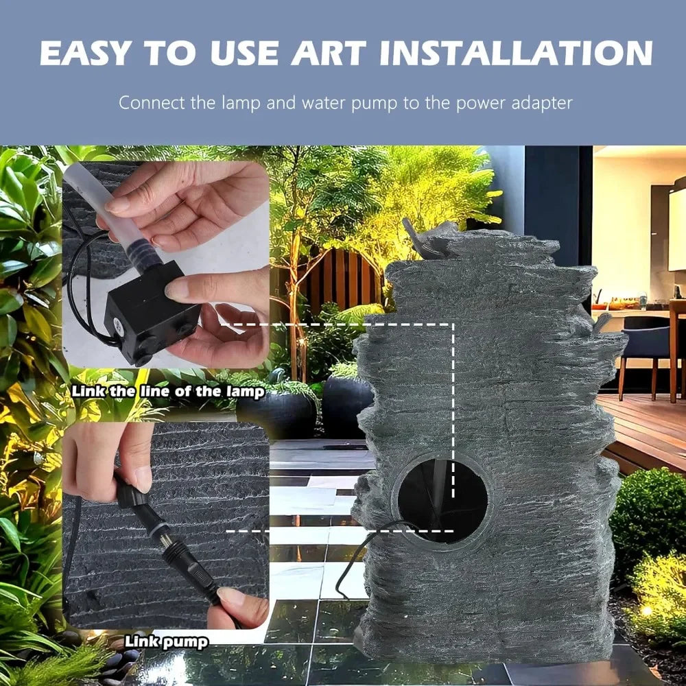 Designed for easy setup and lasting enjoyment, it includes everything you need: the fountain, a reliable pump, lighting links, adapter, and an instruction manual. Perfect for patios, gardens, courtyards, or indoor spaces, its corded electric power and weather-resistant construction ensure year-round enjoyment.