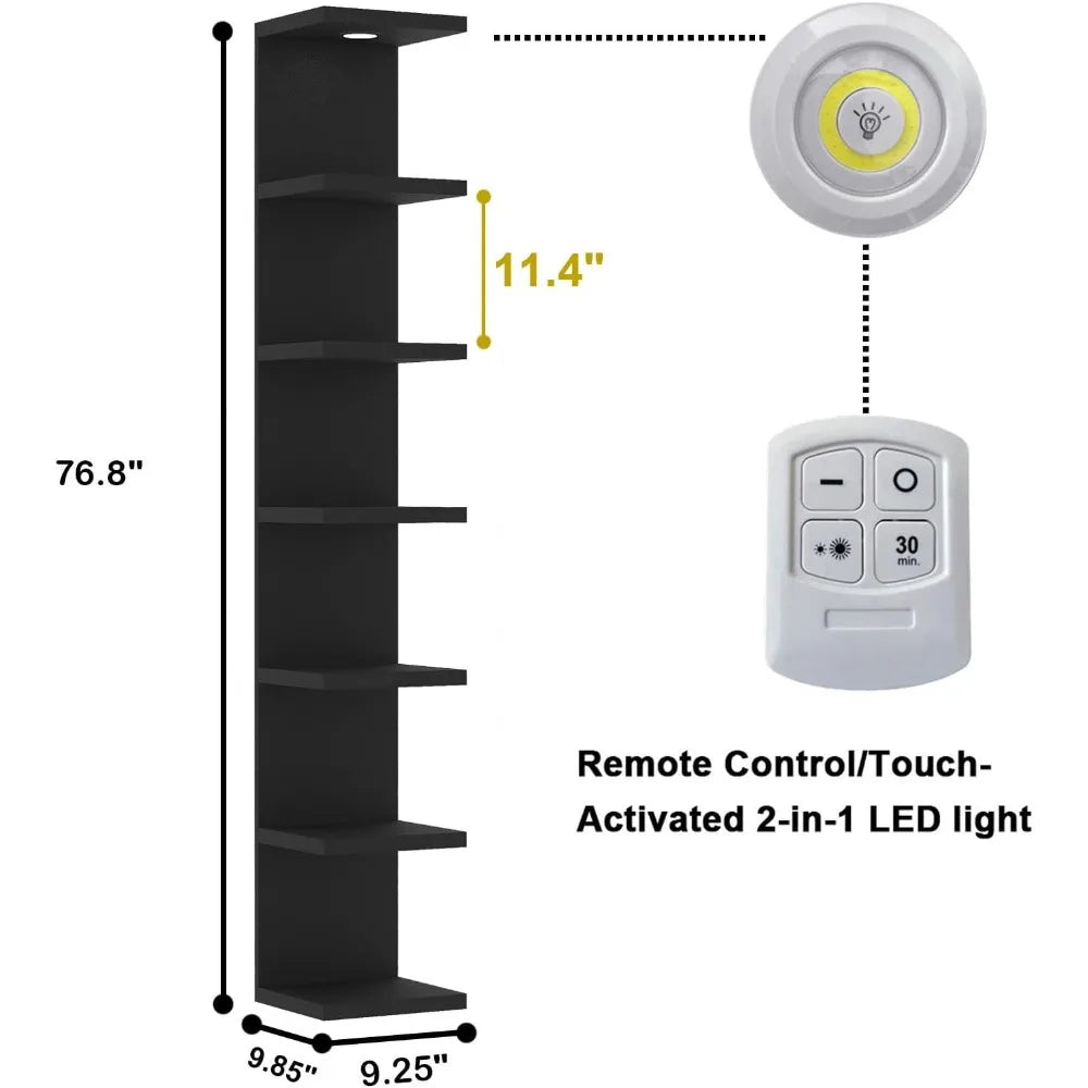 Elevate your space with the 7 Tier Black Lacquer Wall Shelf Unit With LED Remote Light from Hign-concerned. This stylish, self-contained floating shelf system combines a timeless black lacquer finish with practical display, turning empty walls into a curated gallery for your favorite decor, keepsakes, and vanity essentials.