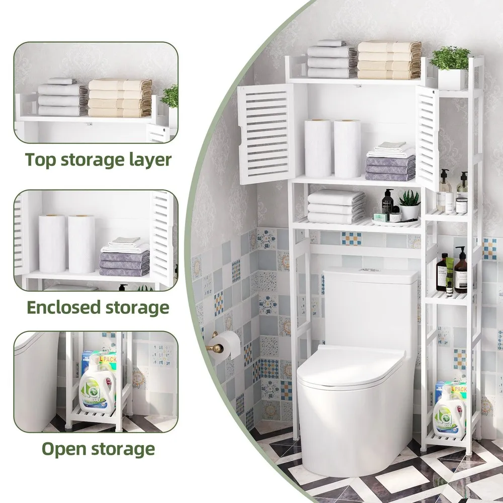 Bamboo Over The Toilet Bathroom Cabinet Storage Rack Space Saver 4 Tier Shelves