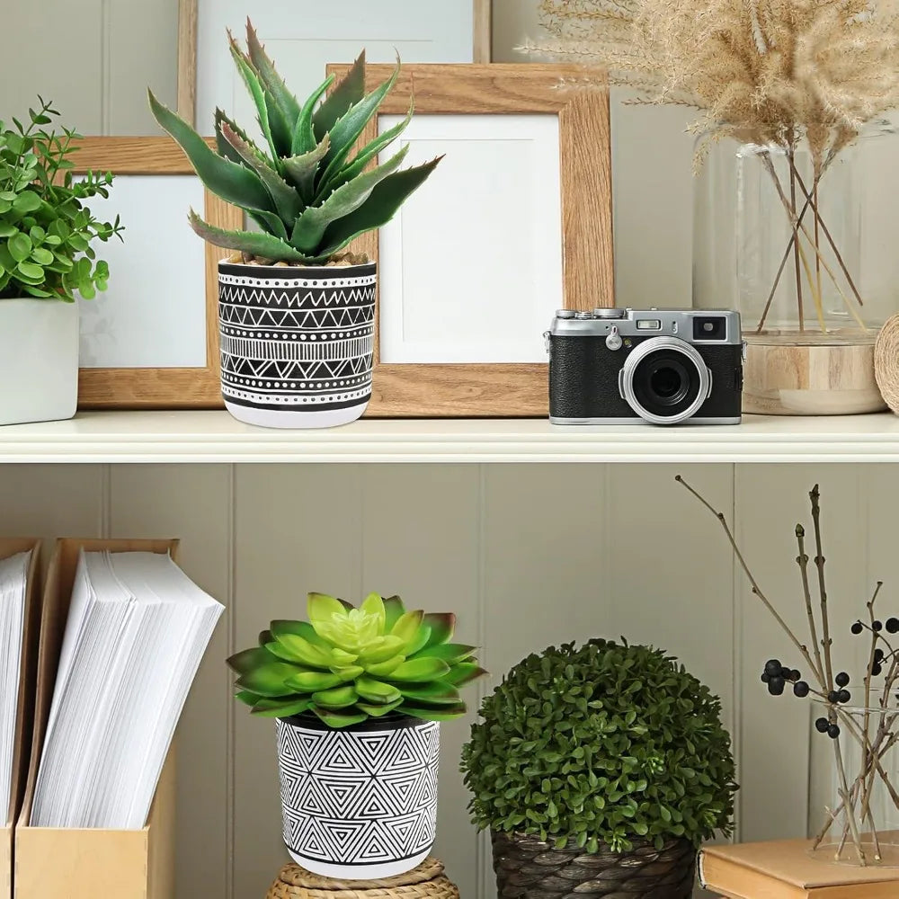 - Compact, versatile size: Approximately 4.5"-7.3" wide and 5.5"-9.1" tall (plants); pots about 3.3" wide and 3.5" tall—perfect for desks, shelves, or windowsills.