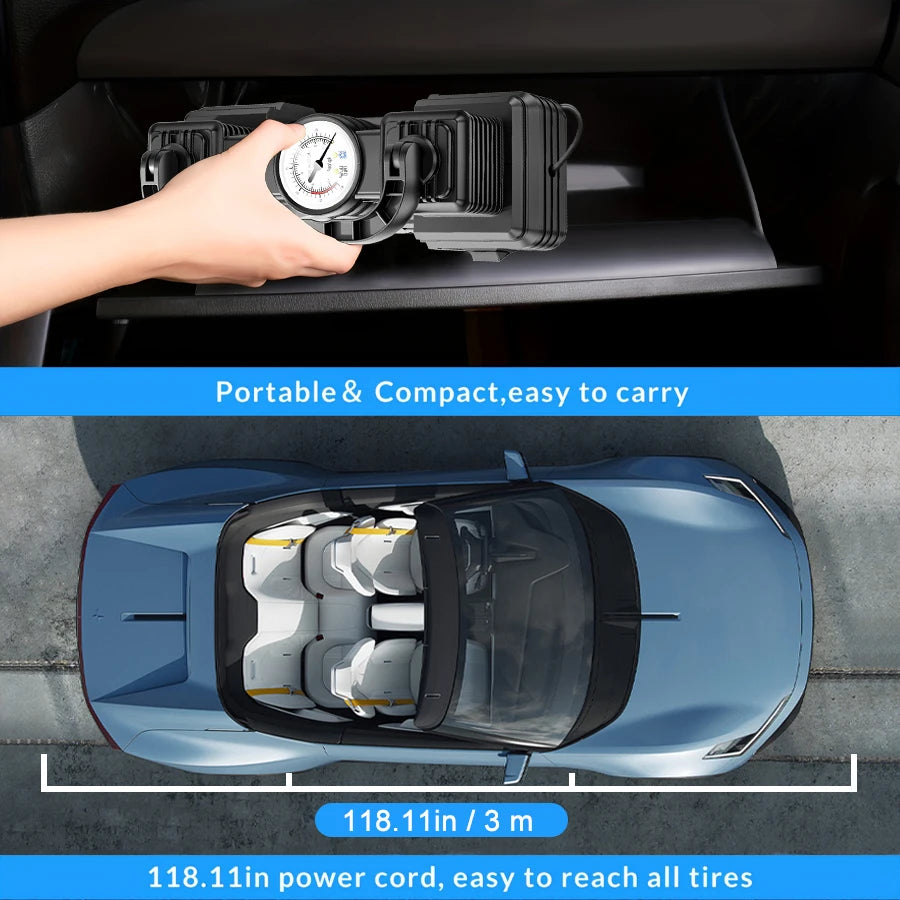 Meet the Ultra Fast Car Tire Pump 12V Corded Inflation In 5 Minutes from GUANTU, a compact, high-performance solution for quick tire inflation. Designed to deliver rapid results, this pump helps you move on faster with less downtime.